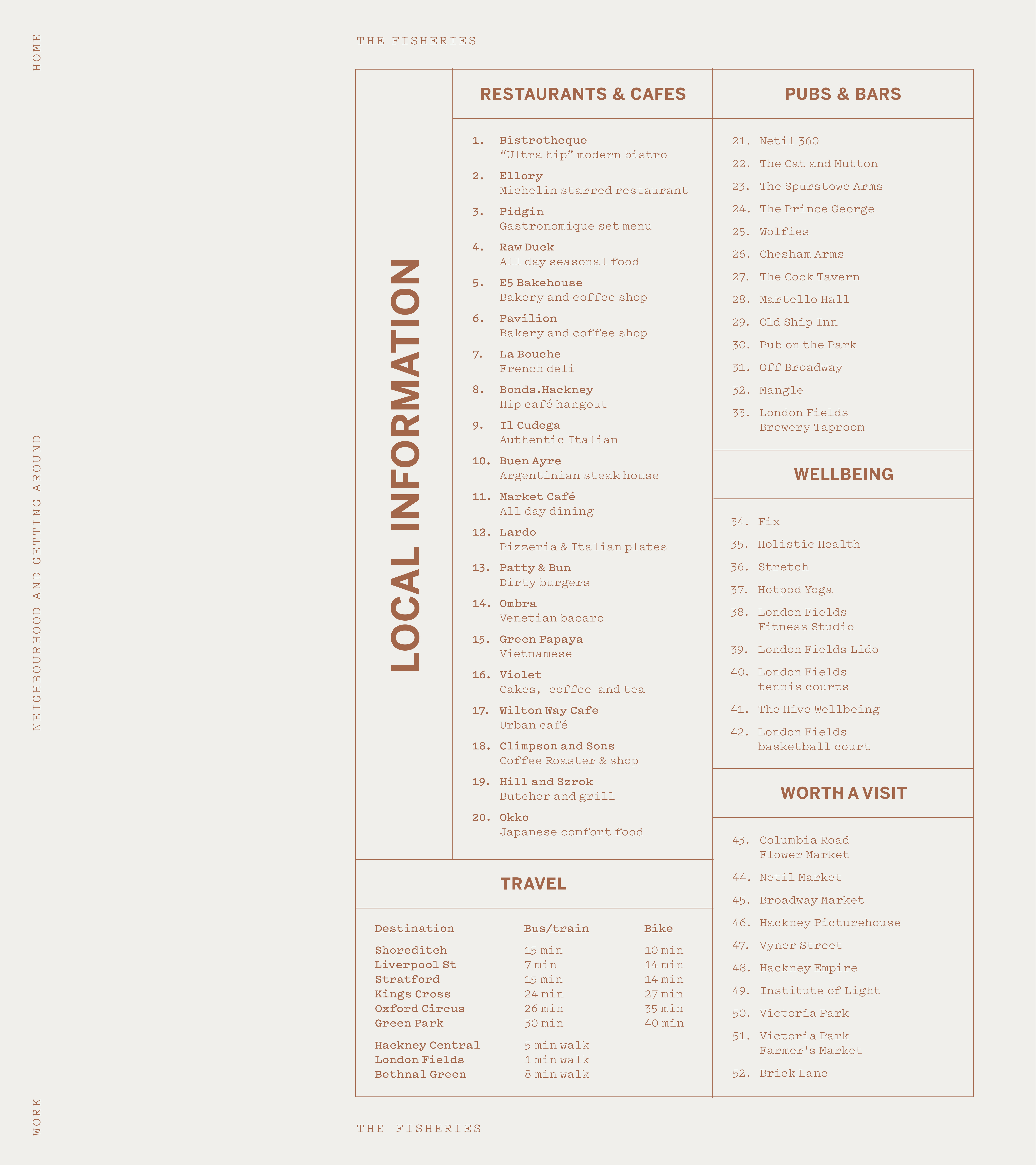 The Fisheries is a live-work development located in the heart of London Fields. It combines 31 warehouse-style apartments with a commercial hub for creative entrepreneurs. We were tasked with creating an identity that respects the building’s industrial heritage while appealing to a modern, design-conscious audience looking for a place to both live and create.